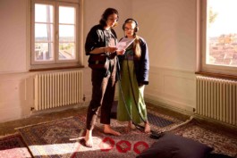 ...Die Ausstellung Ease bietet eine aussergewöhnlich gute Gelegenheit dazu, weil hier zum ersten Mal mehrere Stränge ihrer Arbeit aus verschiedenen Zeiten/Phasen zusammenkommen, und nicht nur das, wir sehen heute auch sowohl Einzelarbeiten als auch gemeinsame Arbeiten, und ich finde so kann man besonders gut sehen wie die Ansätze und Welten dieser beiden Künstlerinnen in dem Duo Eva und Lena zusammenkommen. Wir können nah heran gehen und mit verschiedenen Arbeiten Zeit verbringen und wir können durch das Bewegen durch den Raum von Arbeit zu Arbeit, von Lena zu Eva - zu Eva und Lena gleichzeitig einen wertvollen Abstand gewinnen zu diesen verschiedenen Einheiten oder Positionen und fragen was sie verbindet und und was sie trennt.