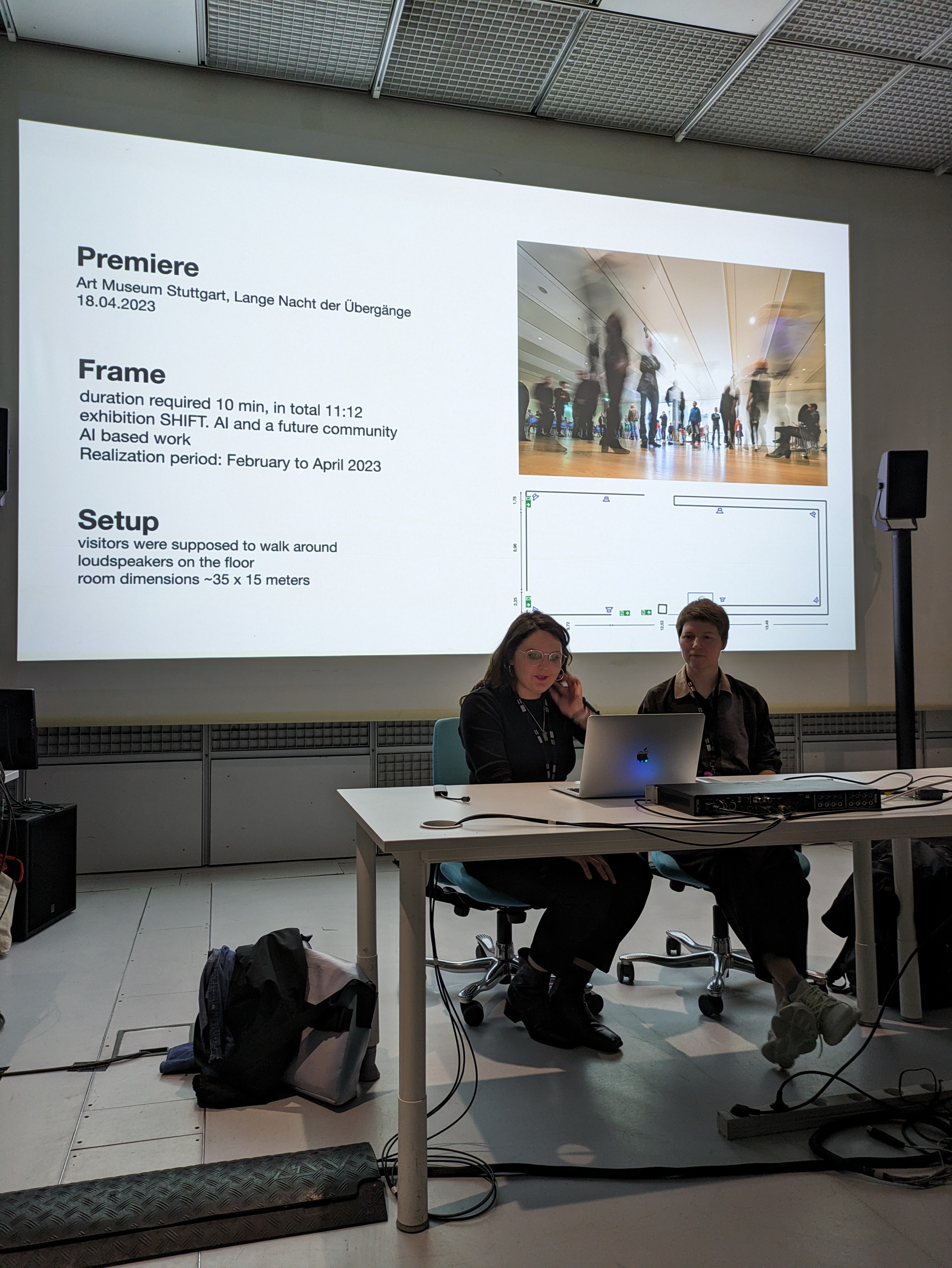 Dieses Stück wurde für die Lange Nacht der Übergänge komponiert. Wir haben ein KI-Modell auf unsere Stimmfarben trainiert. Als Kern des Stücks haben wir ein Gedicht von Emily Dickinson benutzt.